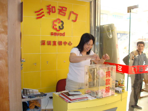 2008年5月15日上合新福装饰材料市场全体的商户及员工踊跃奉献爱心,为在汶川大地震中的灾民共募得一万六仟元。